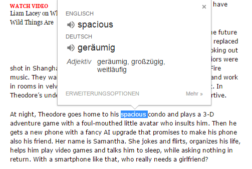 Einfach per Doppelklick deutsche Bedeutungen anzeigen lassen – sehr praktisch: