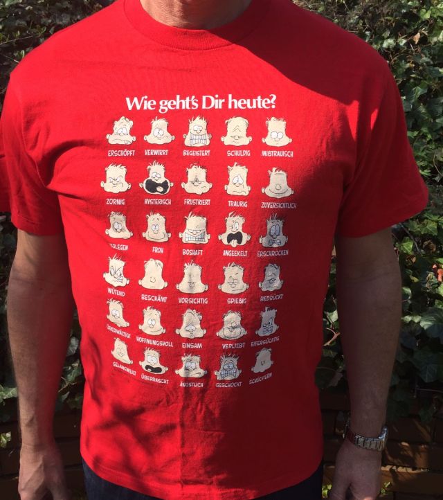 Mit diesem T‑Shirt kann man neuen Wortschatz sozusagen im Vorbeigehen vermitteln: