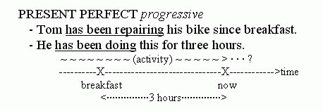 Gut, nehmen wir mal an, jemand unterrichtet an einer Schule, an der es gar keine Grammatik gibt oder nur eine uralte, mit der er nicht zufrieden ist, weil z.B. die Verwendung des present perfect progressive nicht gut erklärt wird. Als erstes würde ich natürlich darauf dringen, dass umgehend eine gute und aktuelle Grammatik angeschafft wird. Falls das aus irgendeinem Grund nicht funktioniert (z.B. wegen fehlender finanzieller Mittel) würde ich das entsprechende Kapitel [Verlagsmitarbeiter bitte weglesen] z.B. aus der Cornelsen English Grammar (Amazon) KOPIEREN. Besser als in der CEG geht’s doch nicht! Verständliche Regeln, gute Beispielsätze, anschauliche Diagramme – für mich unbegreiflich, warum man Zeit und Arbeit in etwas investiert, wenn man von vorneherein eigentlich weiß, dass das Ergebnis schlechter ist als die zeitsparende Kopie.