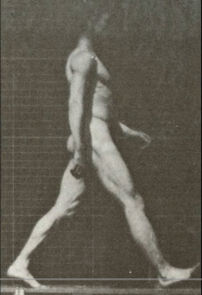 Vernünftig wäre es jetzt, den Männern erstmal wieder normales Gehen beizubringen. Wenn man dieses Video langsam (am besten mit 0.25x) abspielt und bei „Contact“ anhält, sieht man, dass beim normalen, lockeren Gehen das vordere Bein fast ganz gestreckt ist und der Fuß mit der Ferse aufsetzt: