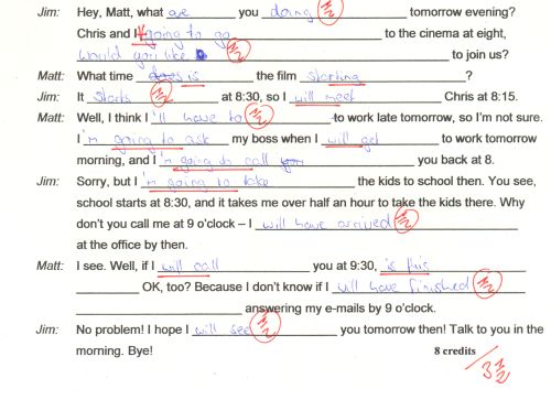 10 Minuten für eine Klausur? (also schauen ob jeder Schüler eine Mail mit Textanhang (Klausur, abgetippt, mit den graphisch hervorgehobenen verbesserten Stellen) geschickt hat?