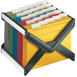 Um dem Materialien-Chaos Herr zu werden, verwende ich eine Hängeregistratur: