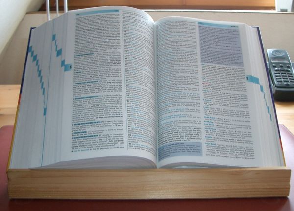 Auf die­se Art habe ich das Lexi­kon griff­be­reit vor mir, so dass ich ein Wort schnell fin­den und gut lesen kann.