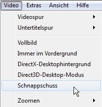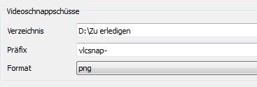Das Verzeichnis, in dem die „Schnappschüsse“ gespeichert werden sollen, und das Dateiformat kann man über Extras > Einstellungen > Video festlegen: